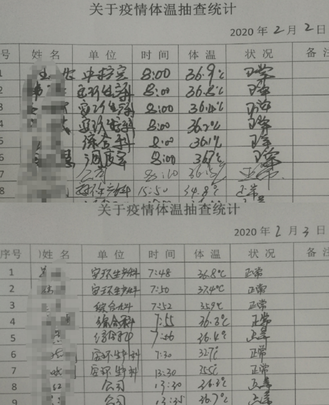 對(duì)已隔離人員密切關(guān)注,每天進(jìn)行詢問其狀態(tài)和體溫進(jìn)行登記。