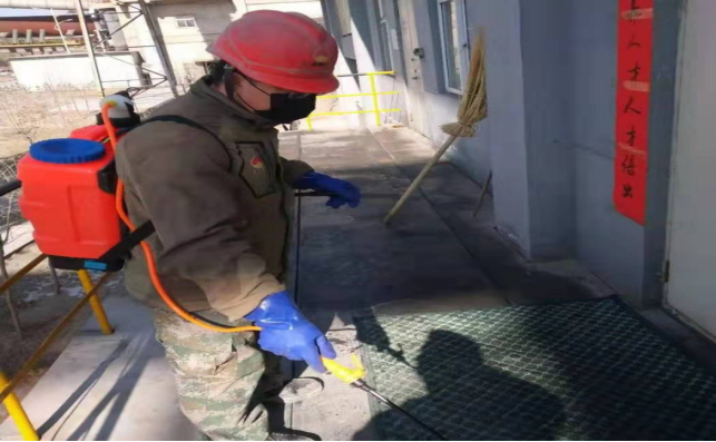 公司安排專人堅(jiān)持對(duì)所屬區(qū)域內(nèi)的辦公室、值班室、操作場所、檢維修作業(yè)場所、中控室、職工宿舍等人員密集場所進(jìn)行消毒。