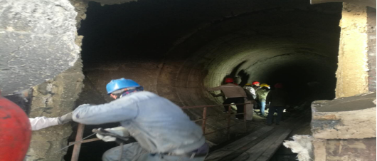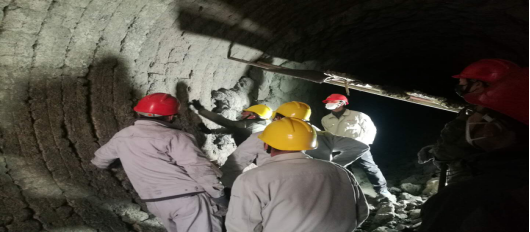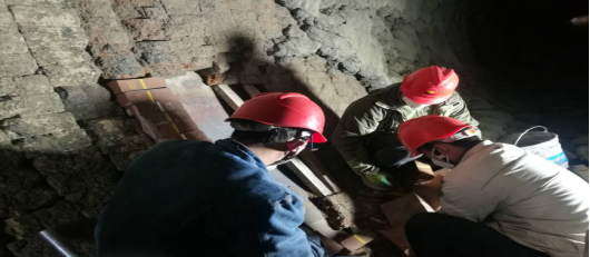 窯磚緊固。加塞,在轟鳴的風(fēng)鎬聲中,夾雜著交替起落的敲擊聲,工友們,正頂著滿面的塵灰完成作業(yè)。