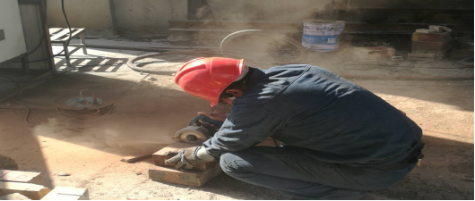 2月19日早上8點(diǎn)動工挖補(bǔ),到當(dāng)日下午19:18回轉(zhuǎn)窯點(diǎn)火升溫,全體管理人員、成品裝置維修工人以及回轉(zhuǎn)窯系統(tǒng)全體在崗工人,在進(jìn)入檢修作業(yè)狀態(tài)的那一刻起,一會兒走入窯內(nèi),熱氣撲面,嚴(yán)肅、緊張的計(jì)算和規(guī)劃,一會兒生產(chǎn)科科長張振忠、成品裝置裝置長帶頭掄動著鐵錘,工友們或蹲著、或扶著支架,每個(gè)人都在揮汗如雨的忙碌著,淺綠色、白色工服上斑斑點(diǎn)點(diǎn)不一的顏色見證著他們流下的每一滴汗水。