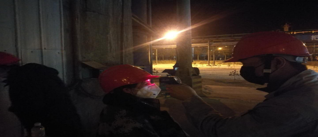 在園區(qū)南門,面對(duì)寒風(fēng),他們從容不迫,是責(zé)任,更是忠誠(chéng)的奉獻(xiàn)。當(dāng)日截止下午17時(shí)整,他們檢測(cè)、消毒、登記車輛53輛,人員53人,車輛正常,人員體溫均在正常范圍。