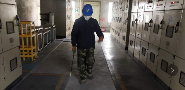 對(duì)廠區(qū)衛(wèi)生間消毒。