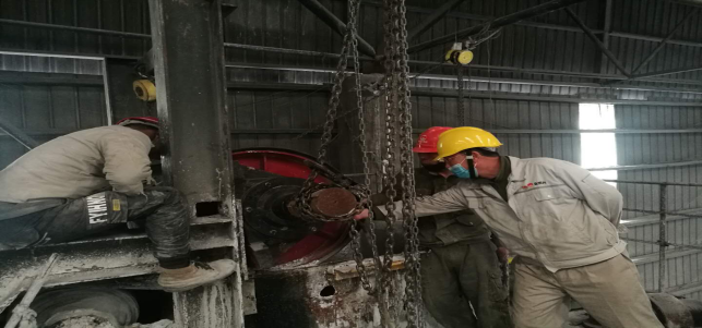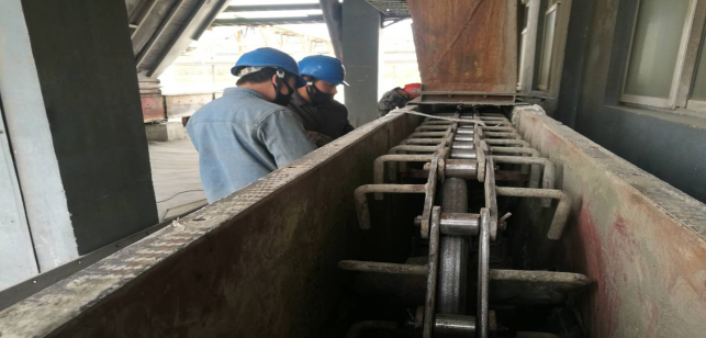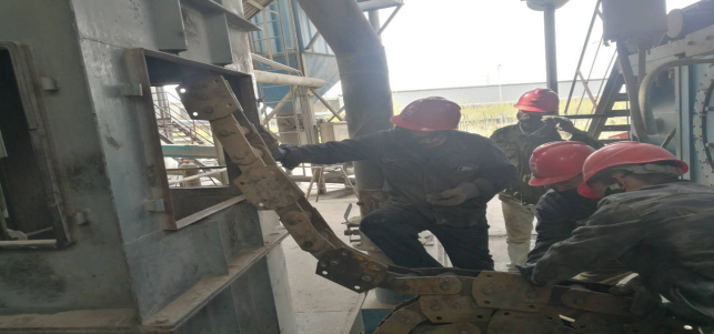 在窯頭收塵器拉鏈機(jī),他們及時(shí)拆卸拉鏈進(jìn)行更換,校正拉鏈平衡度。整個(gè)過(guò)程緊張有序,忙而不亂。無(wú)論是公司領(lǐng)導(dǎo)還是一線職工,大家都全身心投入到檢修戰(zhàn)役中。