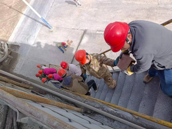 4月11日晚間22時50分許,回轉(zhuǎn)窯筒體24.5米處出現(xiàn)紅窯現(xiàn)象,根據(jù)經(jīng)驗(yàn),初步判斷是窯磚脫落;剞D(zhuǎn)窯系統(tǒng)止料,計(jì)劃挖補(bǔ)。安環(huán)生產(chǎn)科科長張振忠得知消息后,立即向各級領(lǐng)導(dǎo)進(jìn)行了逐級匯報,他們不約而同的在第一時間趕回廠里,立即采取相應(yīng)措施,迅速組織搶修。12日凌晨1:40分許,全體管理人員及崗位巡檢人員頂著寒風(fēng),組織實(shí)施第一步搶搶修工作——打開窯門,進(jìn)行降溫。上午8:00分,公司領(lǐng)導(dǎo)緊急召開搶修前技術(shù)和安全交底,調(diào)集人員,冒著窯內(nèi)高溫,進(jìn)行邊卸料邊轉(zhuǎn)運(yùn)邊挖補(bǔ)工作。按照分工,全體參戰(zhàn)人員都在緊張有序的忙碌著。