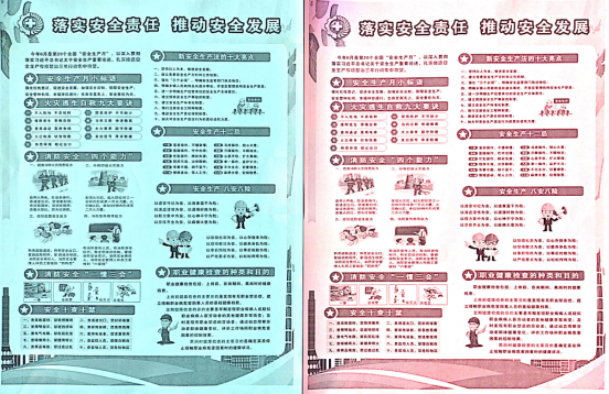 宣傳活動(dòng)周。通過(guò)現(xiàn)場(chǎng)懸掛“安全生產(chǎn)月”相關(guān)內(nèi)容的橫幅,張貼標(biāo)語(yǔ)和宣傳畫,設(shè)置公共宣傳欄,組織員工觀看警示教育視頻,營(yíng)造"安全生產(chǎn)月"活動(dòng)氛圍。緊扣 “落實(shí)安全責(zé)任,推動(dòng)安全發(fā)展”活動(dòng)主題向大家發(fā)放了宣傳安全生產(chǎn)政策法規(guī)、防災(zāi)減災(zāi)宣傳單;現(xiàn)場(chǎng)講解安全科普常識(shí)、機(jī)械傷害知識(shí)及應(yīng)急處置技巧,增強(qiáng)大家的安全生產(chǎn)意識(shí),營(yíng)造了濃烈的安全生產(chǎn)氛圍。此次安全生產(chǎn)月共計(jì)發(fā)放宣傳資料1100余份,懸掛宣傳橫幅2條,組織員工觀看警示教育視頻8場(chǎng)次,鼓勵(lì)員工參加漫畫制作、征文比賽等相關(guān)活動(dòng)。通過(guò)此項(xiàng)活動(dòng),進(jìn)一步強(qiáng)化廣大員工對(duì)“紅線意識(shí)”、“底線思維”、“安全發(fā)展理念”等安全生產(chǎn)重要論述的再學(xué)習(xí)和再領(lǐng)會(huì)。