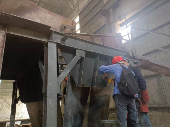 8月9日—11日,在1101皮帶電石渣上料口技改現(xiàn)場,同水泥磨檢修相比,這里由于上料環(huán)境,環(huán)境密閉、空氣不對流,狹小的空間,為了趕進度,提高技改質(zhì)量,這讓檢修工人更加需要具有更強的團結(jié)協(xié)作精神,他們在技術(shù)員的指揮下,分割、配對、焊接……生產(chǎn)裝置負責人丁伏山同志告訴大家:化工目前降負荷運行,大家要咬緊牙關(guān)、克服困難,盡快完成技術(shù)改造項目,盡早投入生產(chǎn)。在現(xiàn)場他是指揮員又是戰(zhàn)斗員,每一個細節(jié)他都結(jié)合經(jīng)驗,進一步對現(xiàn)場改造完善再完善,帶領(lǐng)員工經(jīng)得住高溫的“烤驗”,經(jīng)得住連續(xù)作戰(zhàn)的勞累,于8月11晚20:30分,嚴格按工藝流程要求,完成此項技改項目,控制了下料的均勻性和連續(xù)性,確保了烘干破系統(tǒng)溫度和配料的穩(wěn)定性。