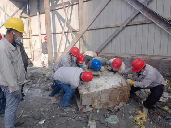 勞動中,全體管理人員充分展現(xiàn)了不怕臟、不怕苦、不怕累,勇挑重?fù)?dān)的良好精神風(fēng)貌。大家熱情高漲,樂在其中。他們有的幾人一組將管件、無法修復(fù)的配件、鋼材邊角料從積料區(qū)域的備件先抬出來,將可利用的鋼板、鋼絲繩等備件挑選出來,用鏟車將積壓物料的廢鐵器翻出來;有的忙著把一些可回收的風(fēng)機用氣割剝,拆下修好后作為備件以備不時之需……