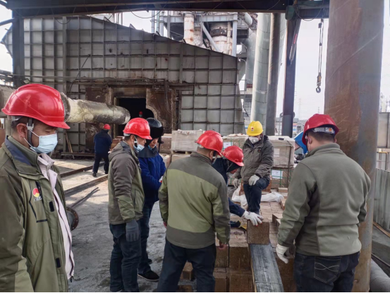 2月12日8:30—2月13日11:30分,在一片緊張有序的指揮中,展開了爭分奪秒的窯磚挖補工作。這里有公司領(lǐng)導(dǎo)、職能科室、質(zhì)檢科及生產(chǎn)裝置全體員工,他們組成兩撥人員,實行24小時工作制。在現(xiàn)場,他們齊心協(xié)力、同舟共濟、相互打壓加氣,每一塊磚凝結(jié)著每一位員工心血。正當(dāng)深夜,每個人堅持工作的最后一刻,從他們的表情中,可以看出,那種屏住呼吸、動作標(biāo)準(zhǔn)、目光堅定,無不詮釋著對工作的履職盡責(zé)。