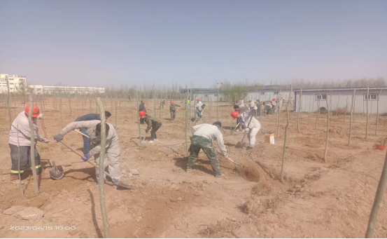 公司每年的春季都會制定本年度的環(huán)保節(jié)能目標,對廠區(qū)內(nèi)的綠化設施進行完善,加大綠化面積,組織一年一度的植樹活動。由于公司主要是生產(chǎn)建筑材料的,以普通硅酸鹽水泥和水泥原材料熟料為主的化工企業(yè),必不可少的廠區(qū)硬化占到了一定的面積,導致綠化覆蓋率較少。但是就是這樣的條件下,公司領導還是在有限的廠區(qū)綠化面積里盡可能的多種樹,改善員工的工作生產(chǎn)環(huán)境,保護環(huán)境衛(wèi)生。公司領導組織員工在原料堆廠的邊上再種一排楊樹,由于原料廠邊上常年受運輸車輛的碾壓,地質堅硬,鐵鍬等普通挖土工具挖土困難,導致種樹進度緩慢。于是公司領導就協(xié)調安排了挖掘機進行挖樹坑,挖好了樹坑,就安排各裝置對于各自區(qū)域的樹苗進行移栽,經(jīng)過大家的齊心協(xié)力,樹苗都被小心翼翼的放到了新挖的樹坑里,你扶樹苗,我埋土,好不熱鬧,在大家共同努力下一排整齊的樹苗矗立在原料堆場的邊上。守護著這邊我們?yōu)橹畩^斗的熱土。