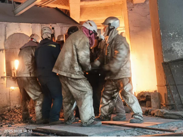 出爐工,是這里的主角。他們身著被汗水反復(fù)浸透又烤干、結(jié)出白色鹽漬的阻燃服,頭戴沉重的防護(hù)頭盔,像無(wú)畏的戰(zhàn)士,堅(jiān)守在陣地的最前沿。他們的工作,是時(shí)刻關(guān)注爐況,用長(zhǎng)長(zhǎng)的鋼釬疏通投料口,防止“棚料”。每一釬下去,都需要全身的力氣,與爐內(nèi)黏稠的料漿抗?fàn)。汗水從額頭滾落,迷住雙眼,卻來(lái)不及擦拭,因?yàn)闋t火不等人。