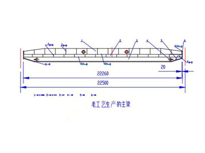電動(dòng)單梁起重機(jī)主梁原來主要采用U型槽加筋板焊接工字鋼,然后焊接兩側(cè)板再聯(lián)接端梁的方式制作。該工藝缺點(diǎn)是U型槽生產(chǎn)效率低、勞動(dòng)強(qiáng)度大、焊接費(fèi)用高、焊接工序耗時(shí)較長(zhǎng),焊接變形量大,焊接過程產(chǎn)生較多電焊煙塵,污染嚴(yán)重,在進(jìn)行多段拼板、焊接、整形的過程中,焊接質(zhì)量難保證,時(shí)有主梁橫向焊縫產(chǎn)生裂紋缺痕。