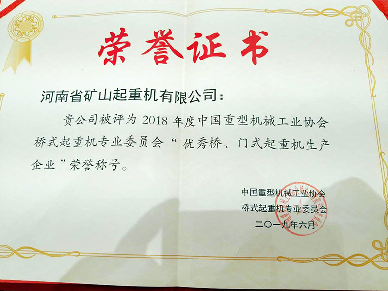 喜訊|河南礦山再次榮獲“門式起重機(jī)生產(chǎn)企業(yè)”榮譽(yù)稱號(hào)